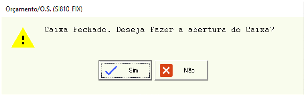 4- Caso apresente esta mensagem de Caixa Fechado, clique em Sim para fazer a abertura.
